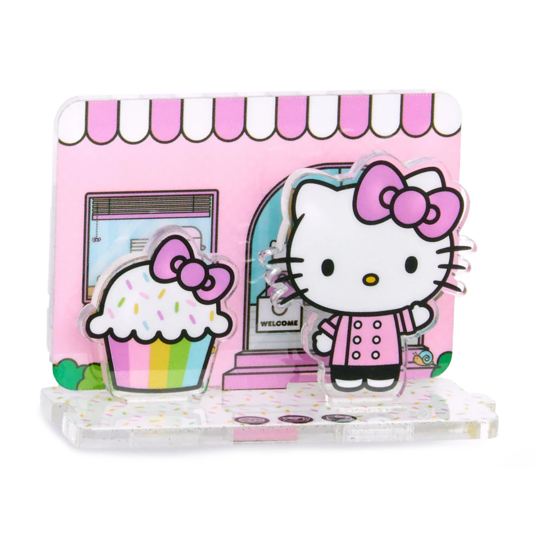 Order up! These 3D scenes are the perfect way to add a bit of personality to your desk or tabletop. Assemble the acrylic pieces together to create a 3D scene with Hello Kitty dressed up as a chef in front of her own little cafe.