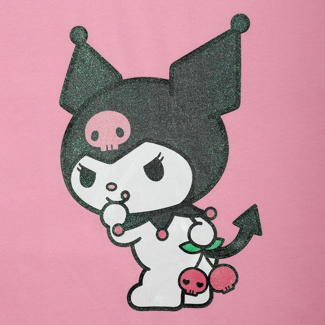 Oh, Kuromi! What are you up to now! Sparkle on with the glittery design printed on a simple pink tee.