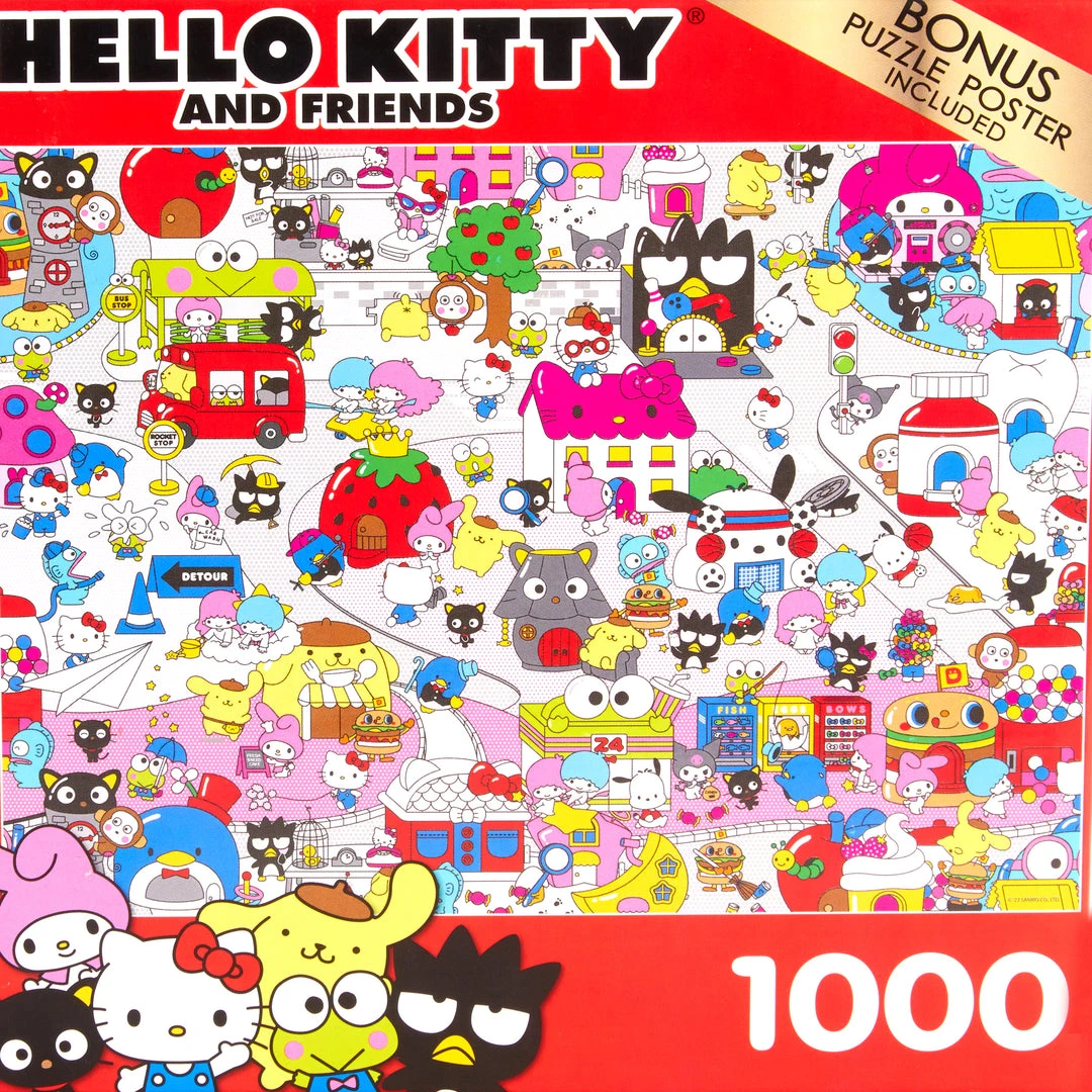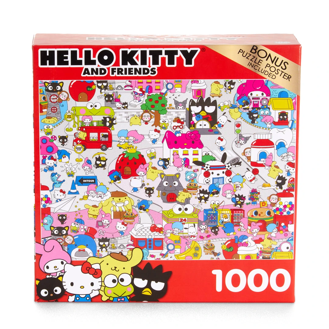 So cute! This 1000-piece jigsaw puzzle features Hello Kitty and her friends running through the busy streets of Sanrio Town in a playful design! Full of rich colors and fun details, this puzzle is perfect for a leisurely weekend indoors.