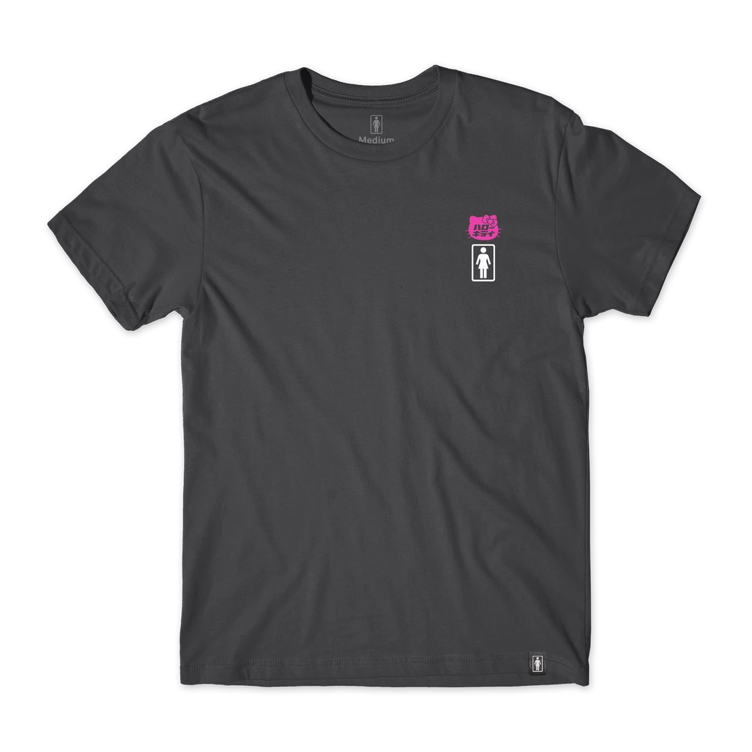 A simple charcoal tee to wear whenever! It has the small GIRL logo paired with Hello Kitty’s silhouette at the chest and a larger Hello Kitty graphic at the back.