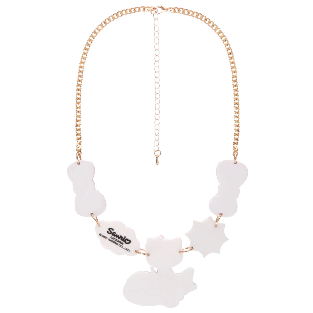 Fly through your dreams with this adorable necklace featuring Hello Kitty! She sits in the middle on an opalescent airplane surrounded by a smiling sun, fluffy cloud, and her iconic red bow on either side. Pair it with the Hello Kitty earrings from Irregular Choice for a matching set.