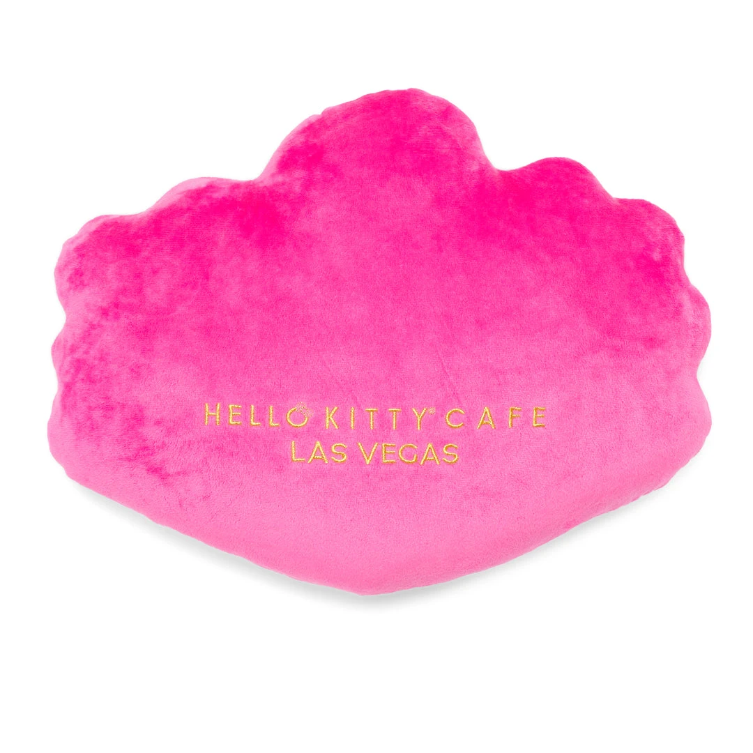 Dying to snag some merch from the Hello Kitty Cafe in Las Vegas? Your wish is our command! This throw pillow is inspired by the iconic “Welcome to Las Vegas” sign, but with a supercute and super delicious twist featuring desserts, pastries, and of course, Hello Kitty! The reverse side is hot pink with embroidered detailing.