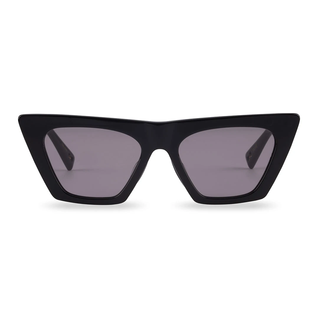 With a slick 80’s edge, Biu Biu makes a bold statement with an angled cat-eye silhouette. Hand polished with dark grey lenses and a high-contrast black acetate frame (accented with a removable, magnetic bow), consider this your new go-to pair for any and every sunny occasion. .